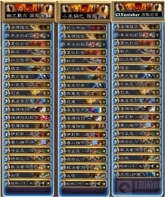 起手找:喵喵喵(随意,看心情);起手可留:炽炎战斧—脏鼠—猛击—怒袭—食尸鬼—爆牌鱼—铜须。