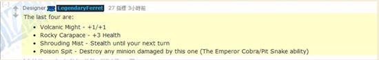 设计师LegendaryFerret在Reddit公布了新机制“进化”的剩余4个可选效果。