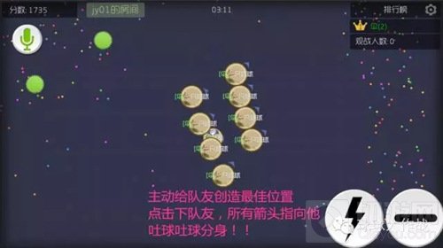 如图二,主动给队友创造最佳位置,点击下队友,所有箭头指向他吐球、吐球、分身。