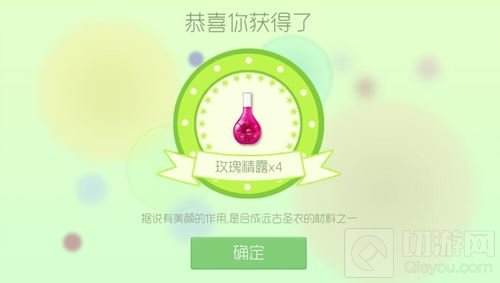 玫瑰精露的作用:用于合成1级多臂战王、1级魅影幻姬、1级绝地武士。