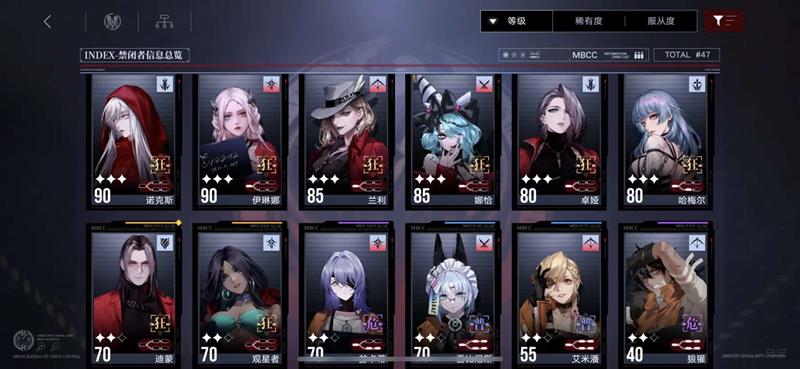 在游戏中,想要获得禁闭者的帮助那就需要抽卡,卡池一般分为常驻池和活动池还有限时返场池。禁闭者被分为普,危,狂三个等级,最高稀有度「狂」的保底池是80抽,说不上有多良心,但是在氪金二游里面算很好的一档了。