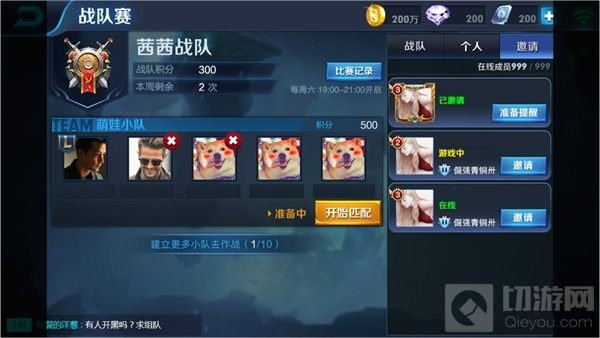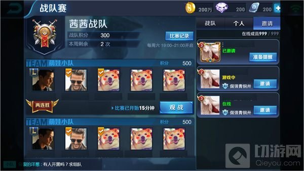 我们将会在每周六到周一20:00~22:00开启战队赛,战队之间正面较量!