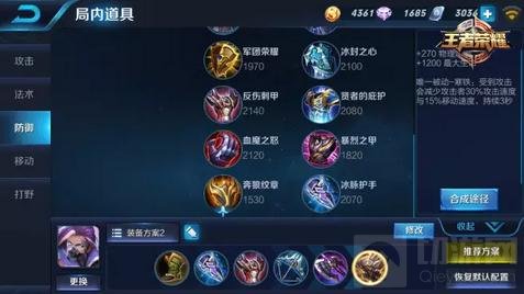 首先出影忍之足或抵抗之靴增加线上游走能力和一定的防御力,冰脉护手这件装备的法力值跟被动能提高线上的续航能力跟快速清兵发育。反伤刺甲加强了自身的防御同时被动效果对敌方物理系英雄有很好的克制。
